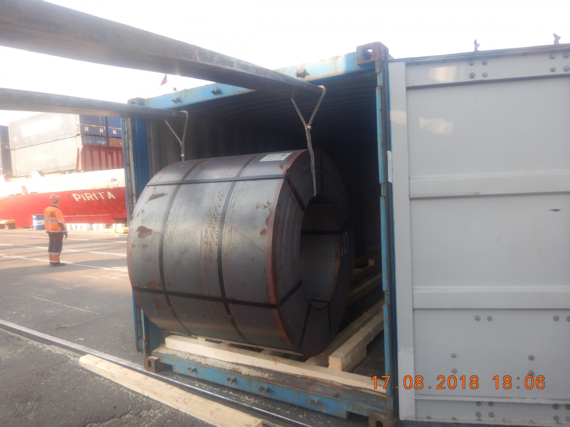 Затарка листового металла в рулонах в контейнер для экспортной отправки
